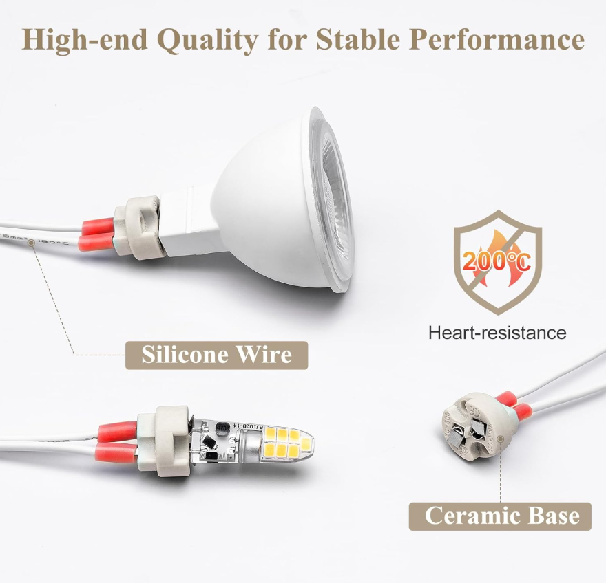 • Ceramic base, mounting holes, thick silicone cooper wires.