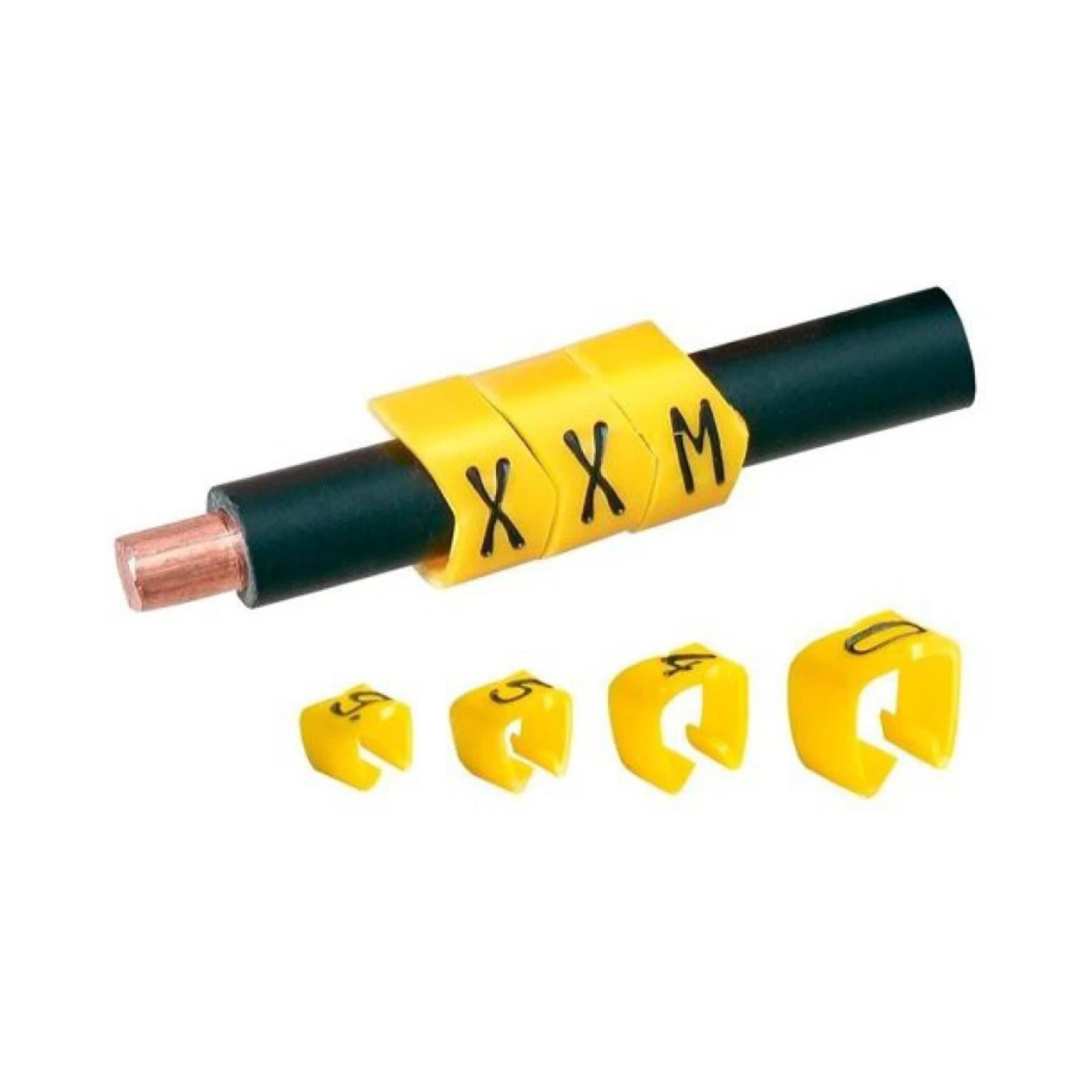 These high-quality PVC cable ferrules feature a yellow body with black markings for easy identification. Available in BM0-BM9, covering numbers 0-9 and letters A-Z, they provide a secure and organized solution for labeling and organizing cables in electrical systems. Ideal for industrial and residential use.
