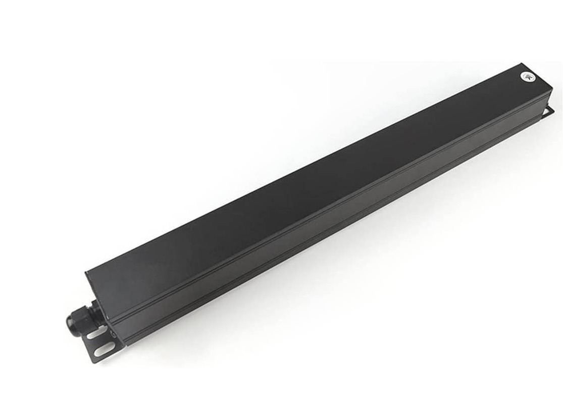 Each PDU is designed to fit horizontally between standard 19″ cabinet profiles.